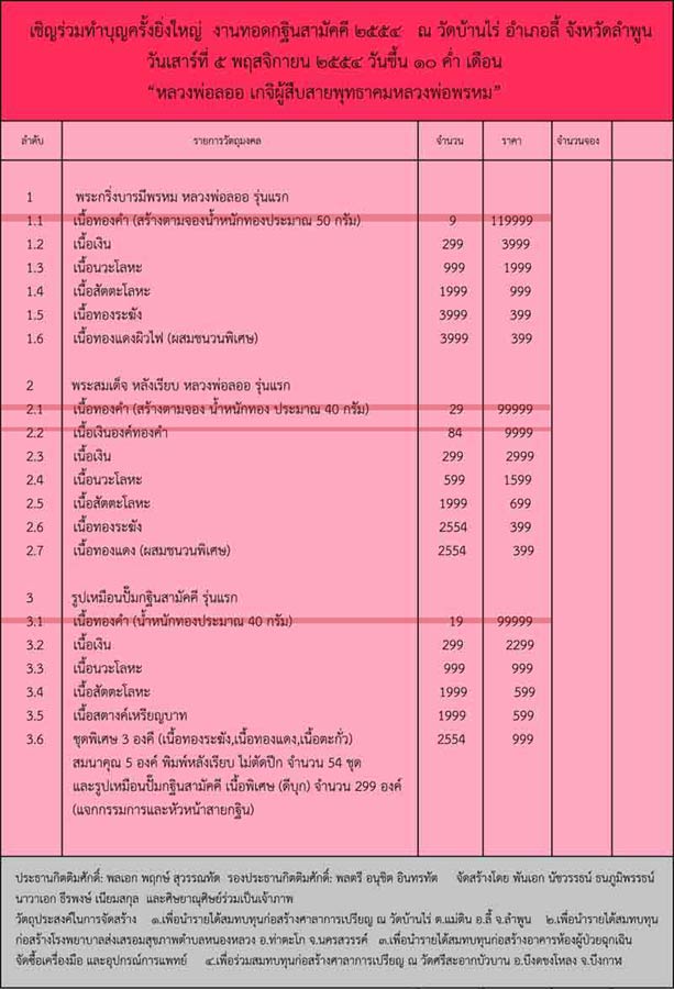 วัตถุประสงค์ในการจัดสร้าง ๑.เพื่อนำรายได้สมทบทุนก่อสร้างศาลาการเปรียญ ณ วัดบ้านไร่ ต.แม่ติน อ.ลี้ จ.ลำพูน