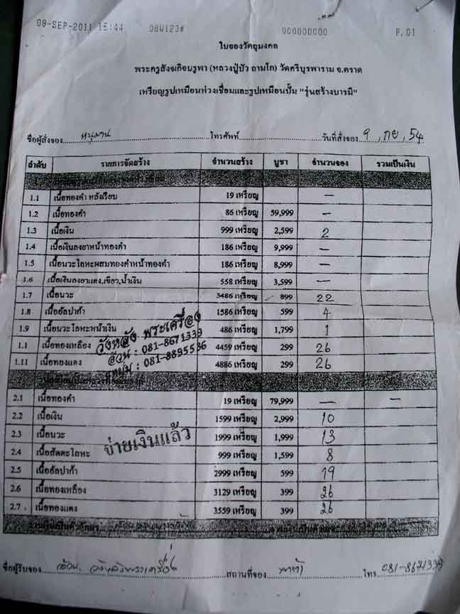 มีใบจองตัวจริง จองกับหนุมาน 55 ได้รับพระแน่นอน รับประกันชั้น 1 ครับจ้าวนาย