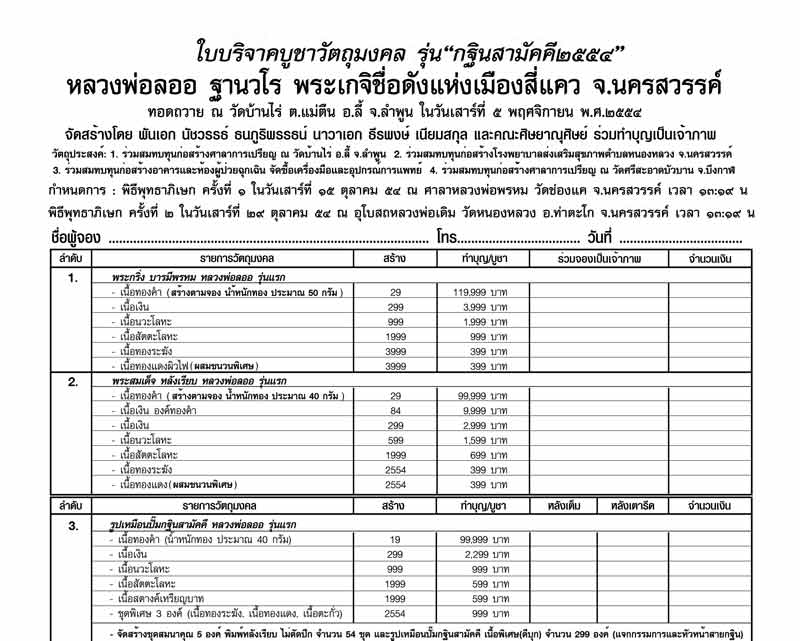 3.5 ชุดพิเศษ 3 องค์ สร้าง 2554 ชุด / ชุดละ 999 บาท / หลังเต็ม ==> มียอด 20 องค์ และ หลังเตารีด ==> มียอด 20 องค์