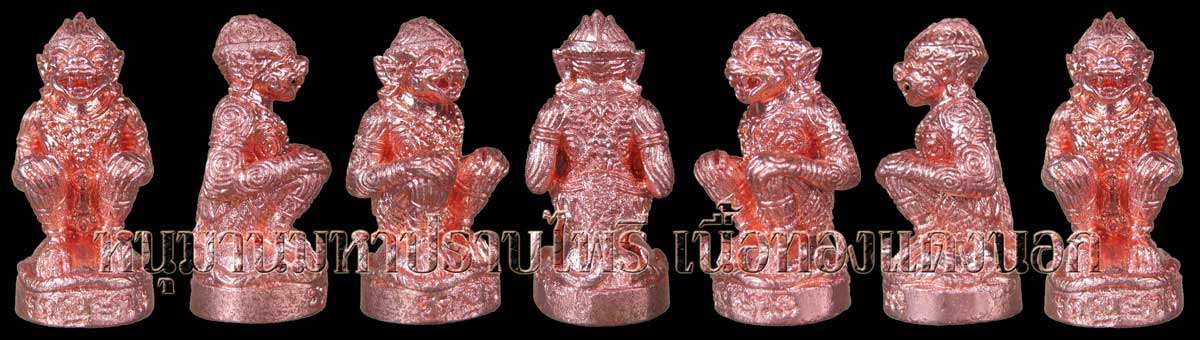 หนุมานมหาปราบไพรี เนื้อทองแดงนอก 1 ตน เนื้อทองแดงสัมฤทธิ์ 1 ตน ปิดตา ๒ หน้า 1 องค์ ปิดตาหลังแบบ 1 องค์........รวม 4 องค์