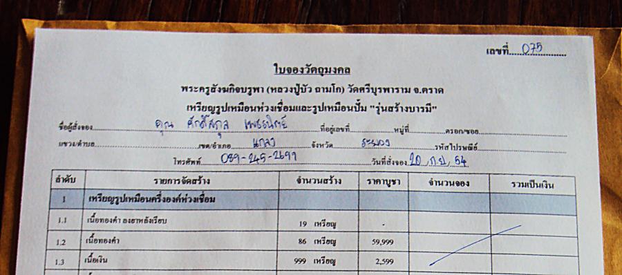 ท่านใดยังไม่มีเชิญครับแบ่งกันไปบูชา มีใบจองตัวจริงจากศูนย์จองโดยตรง