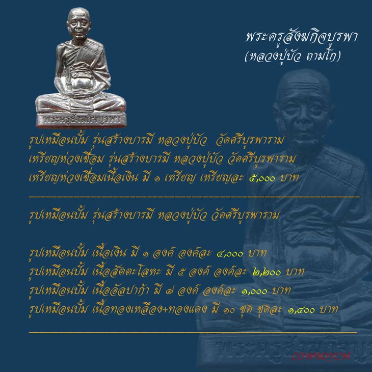 รูปเหมือนปั้ม เนื้อเงิน มี ๑ องค์ องค์ละ ๔,๐๐๐ บาท