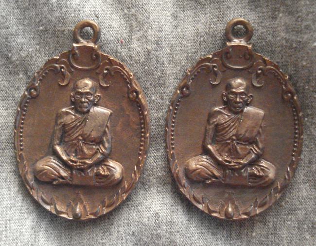 2. เนื้อทองแดงผิวไฟแช่น้ำมนต์ สร้าง 499 เหรียญ มี 5 เหรียญๆ ละ 1,100 บาท (หมายเลข 185, 237, 401, 409, 411)