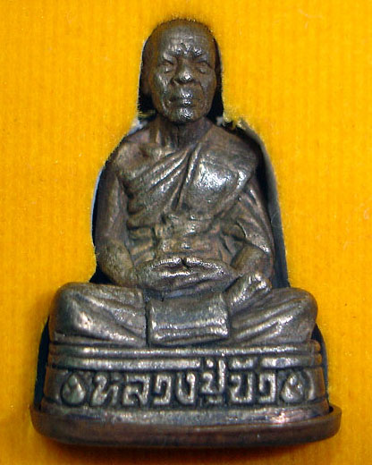 รูปหล่อ 7 รอบ หลวงปู่บัว วัดเกาะตะเคียน จ.ตราด เนื้อนวะก้นทองแดง ออกวันที่ 10 เมษายน 2553 ตอกโค๊ตด้านหลัง และตอกหมายเลขที่ก้น กล่องเดิม