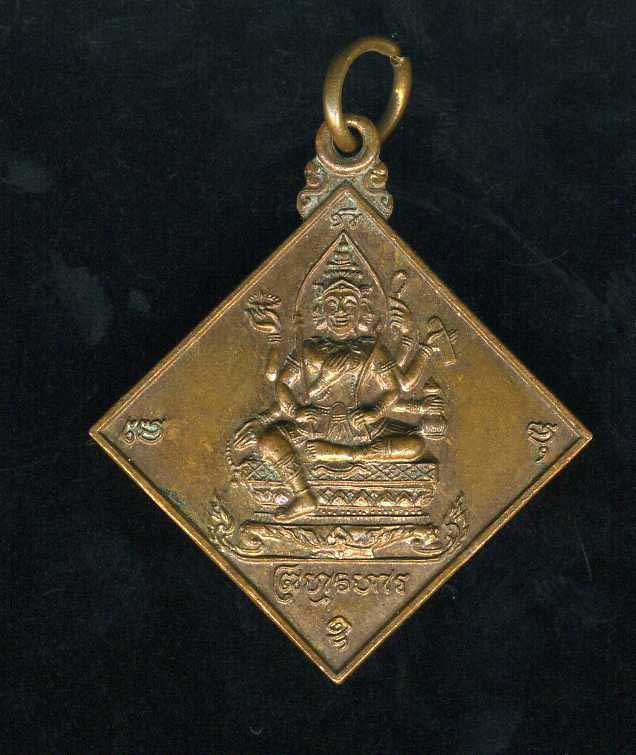เหรียญนี้จะแตกต่างจากอีกพิมพ์คือ อีกพิมพ์ด้านหลังจะเรียบ หลวงพ่อจารให้ด้านหลังบ้าง แต่ทั้งสองพิมพ์ อักขระขอมด้านหน้าจะเหมือนกันทุกประการ ด้านหน้าเหรียญนี้เป็นรูปพระพรหมนั่งห้อยเท้าลงมา ด้านหลังจะเป็นพรหมสี้หน้าเหมือนอีกพิมพ์ ไม่มีจารครับ องค์นี้สภาพสวยสมบูรณ์ไม่โดนใช้มาก่อน เนื้อโลหะเริ่มเก่า มีกระแสคราบเก่าให้เห็น สมัยก่อนพิมพ์นี้ยังพอหาได้ ปัจจุบันหายเกลี้ยงหมด เหรียญดี มีประสบการณ์ ลูกศิษย์สายตรงตามเก็บกันหมด