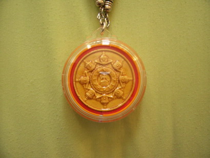 จากตัวอย่างรูป พระผงเจดีย์รายเคลือบเหลือง ขนาด 4.5 ซม. ก็สามารถนำมาใส่ได้ โดยเพิ่มขอบ