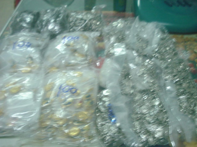 3.เหรียญเม็ดแตงเคลือบคละสี ถุง ละ 100 องค์ มี 4 ถุง ๆ ละ 5500 บาท