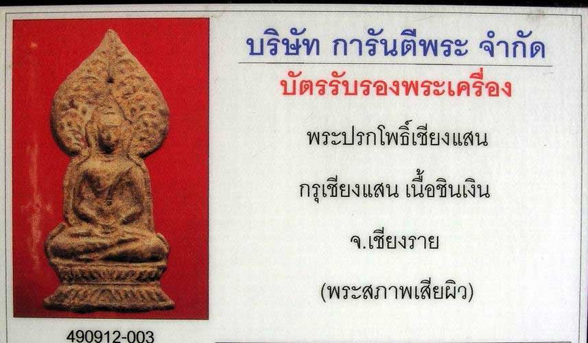 เชียงแสนปรกโพธิ์ พิมพ์ใหญ่ เนื้อชินเงิน + ตลับเงินตัดเข้ารูป + ใบร้บประกันความแท้จากการันตีพระ