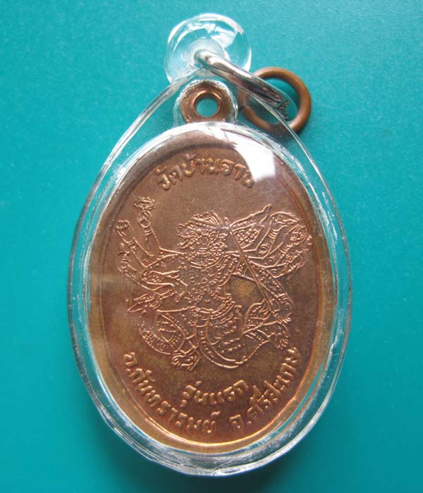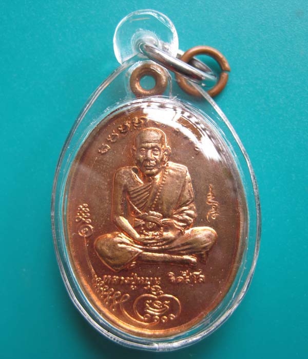 เหรียญหลวงปู่หมุน วัดบ้านจาน รุ่นแรก พิมพ์เต็มองค์ เนื้อทองแดง ปี 2543 จ.ศรีสะเกษ เลี่ยมพลาสติกพร้อมใช้ + บัตร G-PRA