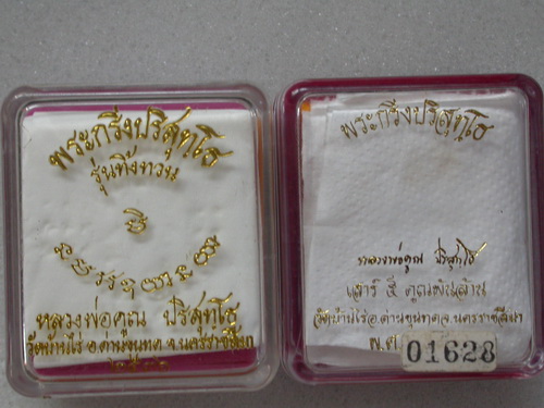 พระกริ่งหลวงพ่อคูณ รุ่นทิ้งทวน ปี 36 เนื้อนวโลหะ สภาพสวยมาพร้อมกล่องเดิมๆ และพระกริ่งหลวงพ่อคูณ รุ่นเสาร์ ๕ คูณพันล้าน ปี 37 เนื้อนวโลหะ สภาพสวย มาพร้อมกล่องเดิมๆ จัดเป็นแพ็คคู่ รีบเก็บครับเป็นของขวัญปีใหม่