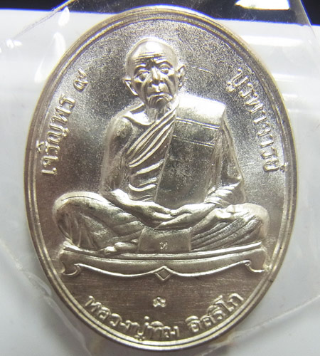 เหรียญ หลวงปู่ทิม พิธีเททองหล่อเศียรหลวงปู่ทิมองค์ใหญ่ รุ่น เจริญพร ๙ บูรพาจารย์ เนื้อเงิน เลข 138 สวยซีลเดิมกล่องกัมมะหยี่ครับ