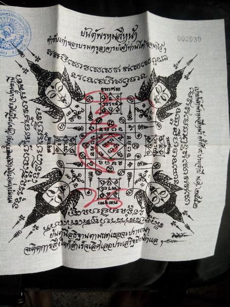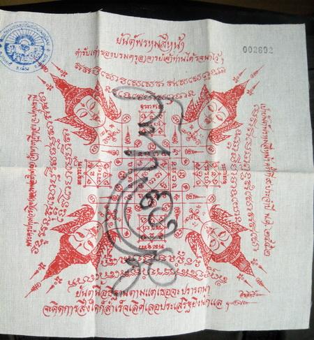 ......... หลวงพ่อชำนาญ วัดบางกุฎีทอง ผ้ายันต์พระพรหมสี่หน้า งานเป่ายันต์พรหมสี่หน้าครั้งที่ ๙ ขนาด 9 x 9 นิ้ว จำนวนสร้าง 5,000 ผืน มีโค๊ตตราวัด และ หมายเลข กำกับ
