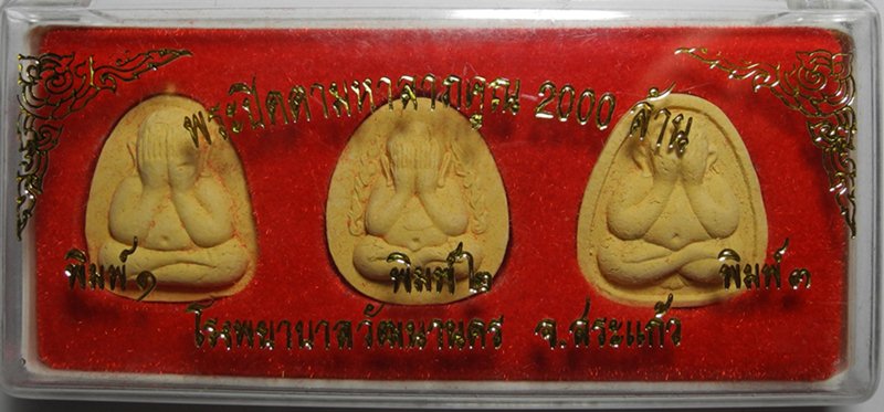 พระปิดตามหาลาภคูณ 2000 ล้าน โรงพยาบาลวัฒนานคร จ.สระแก้ว ปี 2543 หลวงปู่หมุน วัดบ้านจาน ลป.ละมัย ลพ.คูณ ปลุกเสก 1 ชุด 3 องค์ ครับ