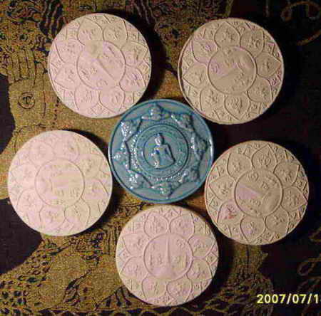 ขุมทรัพย์มหาเศรษฐี ชุดลูกเคลือบ 6 สี ดำ,เขียว,แดง,น้ำเงิน,เหลือง,ฟ้า สำหรับเคลือบฟ้า ไม่เปิดจอง เป็นลูกแถมพิเศษ สร้างน้อยกว่าสีอื่น เปิดขายราคา 4,500 / ชุด นัดรับของได้ มีแค่ชุดเดียว จัดสร้าง โดยวัดพระธาตุ พระราชธรรมสุธี อุปถัมภ์การจัดสร้าง คุณฉันท์ทิพย์ พันธรักษ์ราชเดช เป็นที่ปรึกษา และพิธีกรรม (อ้างอิงจาก ใบโบรชัว์ นะครับ) หมายเหตุ พระออกมาจริงๆ อยู่ระหว่าง 4.7 - 5.0 ซม. ไม่เต็ม 5 ซม. เพียงแต่องค์พระ ใหญ่กว่าขนาด 4.5 ซม.