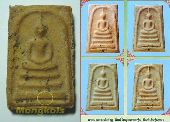หลวงปู่ลำภู ได้นำพระสมเด็จบางขุนพรหมฯ เมื่อคราวแตกกรุปี 2500 ท่านได้นำชิ้นส่วนพระสมเด็จบางขุนพรหมฯ ที่ชำรุด มาผสมและกดพิมพ์พระขึ้นมาใหม่ ในปี 2502 แล้วนำไปบรรจุลงกรุ 2 แห่งคือ บนกุฏิและใต้ต้นโพธิ์ ส่วนหนึ่งที่ไม่ได้ลงกรุ ได้แจกให้กับลูกศิษย์ ลักษณะภายนอกจะคล้ายกับ บางขุนพรหมฯ ปี 09 แต่แป้งโรยพิมพ์ของ ลป.ลำภูนั้น จะขาววาว ส่วนปี 09 จะขาวขุ่น พระ ลป.ลำภู เป็นพระที่ผสมผงบางขุนพรหมฯ ถือว่ามากทีเดียว สำหรับองค์ที่นำมาลง เป็นพิมพ์ใหญ่ พระประธาน (เกศจรดซุ้ม) หลังเรียบ เป็นที่สร้างในยุคแรกๆ ลงกรุ เนื้อจัดมาก สวยเดิม ไม่หักไม่ซ่อม สายสมเด็จฯ ไม่ควรพลาด