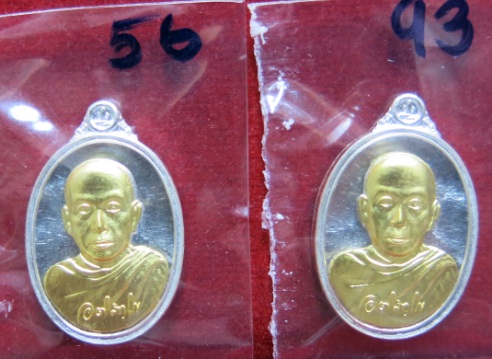 เหรียญเม็ดแตงมหาสิทธิโชค พระมหาสุรศักดิ์ วัดประดู่ฯ เนื้อเงินหน้าทองคำ เลขสองหลัก เบอร์ 56 , 93 สร้างน้อย เลขสวยๆ สองหลังหายากมากครับ