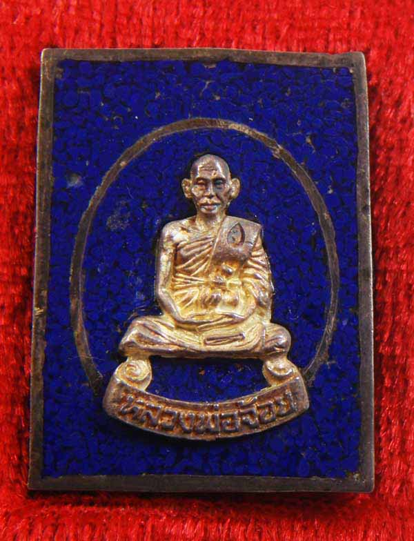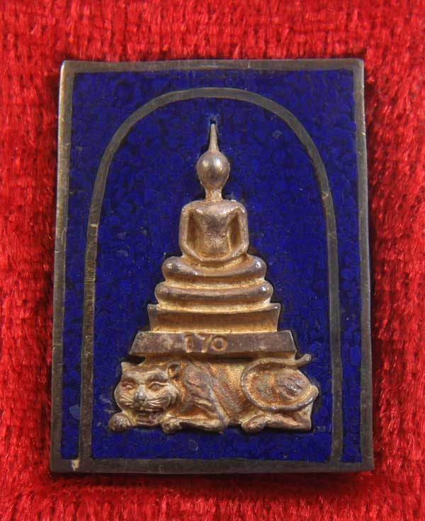 เหรียญสมเด็จหลังหลวงพ่อจ้อย รุ่นพยัคฆ์สยาม วัดหนองน้ำเขียว อ.บ้านบึง จ.ชลบุรี ปี 38 เนื้อเงิน หินโอปอสีน้ำเงิน พร้อมกล่องวัด หมายเลข 170