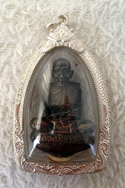 รูปหล่อโบราณ หลวงปู่กาหลง เขี้ยวแก้ว รุ่นแรก ปี 49 เนื้อนวะโลหะ (เลี่ยมเงิน)