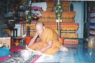 ทำพิธีบวงสรวงอาราธนาบารมี ปลุกเสก ณ วัดตาอี จ.บุรีรัมย์ ในวันที่ 10 ธันวาคม 2546 หลังพิธีเสร็จ