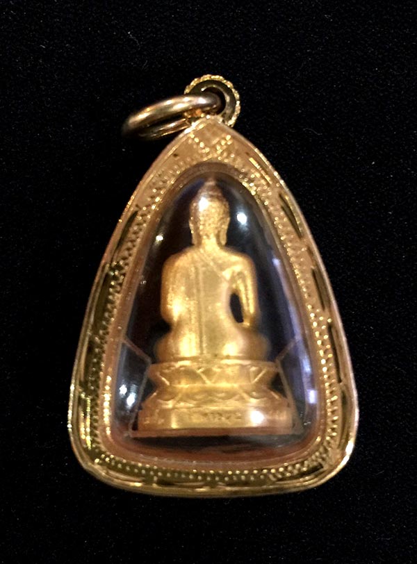 ขนาด ๑.๕ ซ.ม. เนื้อชุบทองพ่นทราย ๓,๐๕๐ องค์ เนื้อเงิน ๕๒๙ องค์ เนื้อทองคำ ๕๑ องค์