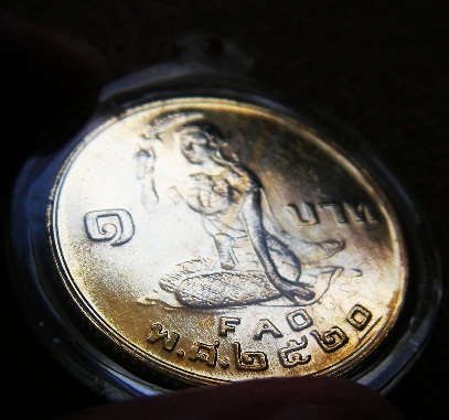 เหรียญ FAO โปรยข้าว หลังแม่โพสพ ปี 2520 มีรอยจารหลวงปู่ตี๋เต็มหน้า-หลังเหรียญ กองกษาปณ์นำไปกะไหล่ทอง ถวายหลวงปู่ตี๋ วัดหลวงราชาวาส ให้จารและปลุกเสกเพิ่มเติมเพื่อแจกจ่ายข้าราชการระดับสูง เหรียญกะไหล่ทอง สวยมากๆจารเต็มเหรียญ ทำให้สะท้อนแสงถ่ายรูปอยากมากๆ เลี่ยมพร้อมใช้ หายากมากๆครับ