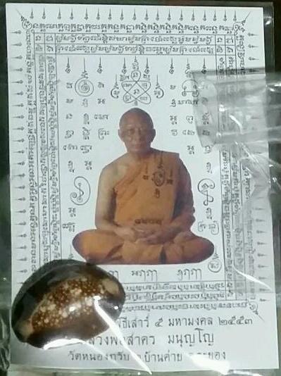 เบี้ยแก้เปลือย รุ่นแรก ปี53 ลพ.สาคร หมายเลข ๑๕๐๙ อุดแผ่นตะกั่วตอกโค๊ต+จารมือ