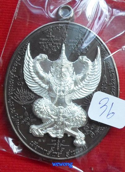 เหรียญพญาครุฑ มหายันต์ เรียกทรัพย์ รุ่นแรก หลวงปู่อุดมทรัพย์ (พระอาจารย์จ่อย) เนื้อนวโลหะหน้ากากเงิน หมายเลข 36 เปิดที่ราคา 2,250 บาท  |