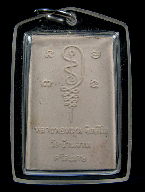 พระผงรูปเหมือนหลวงปู่หมุนวัดบ้านจานพิมพ์ซุ้มพญานาคฝังตะกรุดทองแดง1ดอก ปี2543 จ.ศรีสะเกษ ๑ใน๗๐๐องค์ พร้อมบัตรการันตีพระครับ