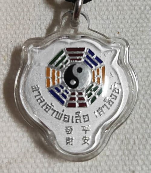 เหรียญหน้าเสือ เนื้อเงินลงยา ศาลเจ้าพ่อเสือ เสาชิงช้า กทม.
