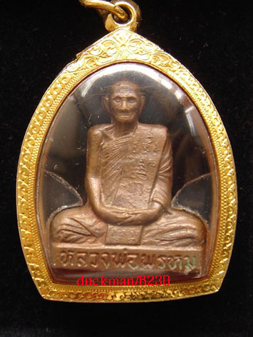 รูปเหมือนปั๊ม พิมพ์ เข่ากว้าง-หลังเต็ม ล.พ.พรหม วัดช่องแค ปี 2516 เนื้อทองแดง สร้างจำนวน 5,000 องค์ ตอกโค๊ด อุ เลี่ยมทอง