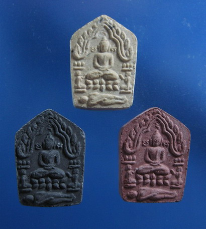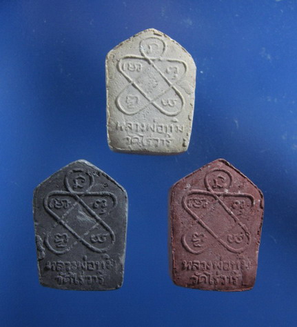 ขุนแผน รุ่นสากหัก พิมพ์เล็ก 3 องค์ 3 สี ( ดำ แดง ขาว ) สภาพสวยเดิมๆ ..... ขุนแผนสากหักเป็นชื่อที่มาจากการที่ขณะที่ตำผงของพระขุนแผนรุ่นนี้ซึ่งมีส่วนผสมผงพรายกุมารของหลวงปู่ทิมมากที่สุด โดยผงพรายได้รวบรวมมาจาก ลูกศิษย์อาวุโสที่ใกล้ชิดหลวงปู่ซึ่งได้เก็บผงพรายของอาจารย์ไว้คนละเล็กละน้อยนำมารวมๆกันเพื่อสร้าง พระขุนแผนรุ่นนี้เกิดเหตุมหัศจรรย์คือขณะที่ตำผงผสม กำลังจะได้ที่จะกดพิมพ์พระสากหินที่กำลังตำผงอยู่หักกลางเป็นที่โจษจันกันว่าผงพรายกุมารหลวงปู่ทิมนี่แรงและเข้มขลังสุดยอดจริงๆ มี 2พิมพ์ พิมพ์ใหญ่และพิมพ์เล็ก พิมพ์ใหญ่มี 3 สีคือ สีแดง ขาว และดำ ปลุกเสก2ครั้ง ครั้งแรกโดยพระคณาจารยต่างๆและสายตะวันออกระยองหลายองค์ ครั้งที่2นำเข้าพิธีมหาพุทธาภิเศกเททอง หล่อพระกริ่งชินบัญชรมหาปราบที่วัดระหารไร่ ในวันที่ 26 ต.ค.2546 โดยมีพระคณาจารย์นั่งปรกปลุกเสก 4 ทิศ คือ 1.หลวงปู่ธรรมรังสี วัดพระบาทเขาพนมเพลิง จ.บุรีรัมย์ 2.หลวงพ่อฟู วัดบางสมัคร จ.ฉะเชิงเทรา 3.หลวงพ่อแจ่ม วัดเขาสำเภาทอง จ.ระยอง 4.หลวงพ่อสาคร วัดหนองกรับ จ.ระยอง ศิษย์เอกหลวงปู่ทิม เป็นขุนแผนที่น่าใช้และอนาคตไกลอีกรุ่นหนึ่ง เหมาะสำหรับท่านที่ต้องการของดีราคาถูกครับ.... รุ่นนี้ก็มีประสบการณ์แล้วนะครับ.... ( เจอก่อน ตัดสินใจก่อน ได้ก่อน )