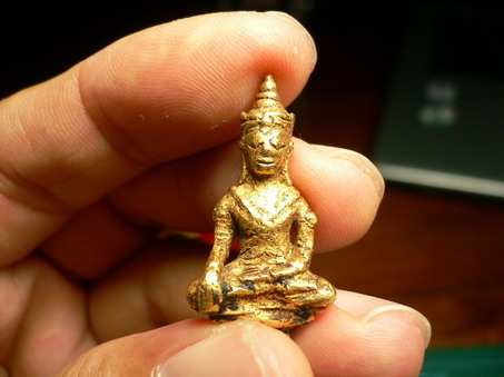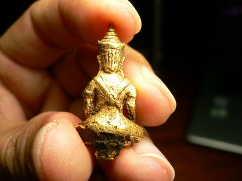 เวลาออกศึกสงครามสมัยก่อนจะมีทหารถือธงนําเพื่อบอกฝ่ายและเป็นศูนย์รวมทางด้านจิตใจที่ยอดธงจะมีพระเครื่องบรรจุอยู่ที่ฐานจะทําเป็นเดื่อย พระองค์นี้เป็นเนื้อทองคําทรงเครื่องกษัตรย์แสดงว่าไม่ธรรมดา เหมาะแก่ผู้ที่เป็นเจ้าคนนายคน มีลูกน้อง เปิดให้บูชาไม่แพง พร้อมตลับทองคําเคยประกวดได้รางวัลที่สองมาแล้ว |