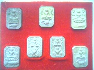 "พระพุทธเจ้าประทับสัตว์" (7 พิมพ์ 7 องค์) เนื้อผงขี้ธูปกรรมฐาน ของหลวงพ่อเชิญ วัดโคกทอง (ผู้ลือลั่นไม่เป็นสองรองใคร) จังหวัดพระนครศรีอยุธยา ฉลองอายุครบรอบ 84 ปี (7 รอบ 7 พิมพ์) 30-31 มีนาคม 2534
