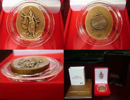 เหรียญพระพิฆเนศวร ปางมหาเทพแห่งศิลปะของแผ่นดิน รุ่นเฉลิมพระเกียรติ ๘๐ พรรษา เนื้อบรอนซ์ ขนาด 2.5x3 ซม. จัดสร้างโดยบริษัท บริษัท เวิร์คพอยท์ เอ็นเทอร์เทนเมนท์ จำกัด (มหาชน) )(คุณปัญญา นิรันด์กุล)