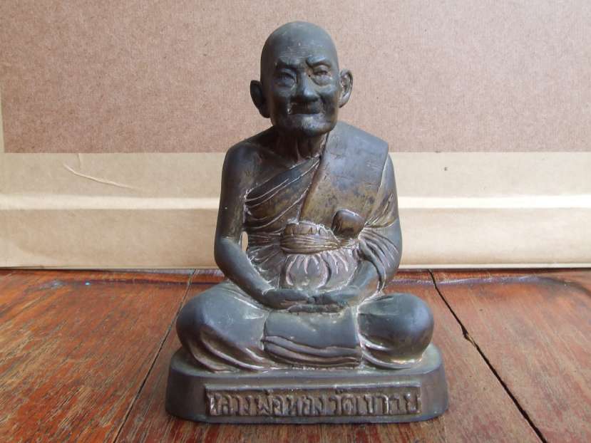 ครั้นเวลาต่อมา ตากบยายเขียดถึงแก่กรรม หลวงพ่อทองนึกถึงคุณความดีของตากบยายเขียด จึงได้จัดการฌาปนกิจศพให้ พร้อมทั้งได้หาช่างมาปั้นรูปจำลองของตากบยายเขียดตั้งไว้หน้าอุโบสถ ซึ่งปรากฏให้เห็นจนทุกวันนี้