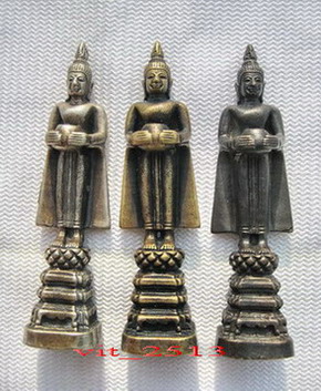 หลวงพ่อบ้านแหลม วัดเพชรสมุทร เนื้อกะไหล่ เงิน ทอง นาก รุ่นสร้างเขื่อน ปี 14 ให้เช่าทั้งชุด 3 องค์
