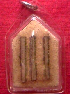 โดยนำมาบดผสมรวมเข้ากัน แล้วนำมากดเป็นองค์พระลงในบล๊อกทีละองค์ๆ ด้วยมือของหลวงปู่เอง (ในสมัยนั้น ยังไม่ได้ใช้เครื่องปั๊ม ซึ่งองค์พระจะสวยงามไปอีกแบบหนึ่ง ซึ่งจะต่างจากพระที่ผลิตจากโรงงานอย่างสมัยนี้) แล้วหลวงปู่ท่านยังได้เมตตารวบรวมเงิน (เหรียญ) จากปากผี (ศพ)ซึ่งเป็นวัตถุอาถรรพ์อย่างหนึ่ง ที่หลวงปู่ได้มาจากการพิจารณาปลงอสุภะ (ศพ) จาก 7 ป่าช้า แล้วนำมาหลอมและรีดเป็นให้แผ่นแล้วจึงนำมาลงอักขระเลขยันต์ โดยจารอักขระเลขยันต์ไว้ให้จำนวน 3 ดอก (ซึ่งเป็นรุ่นแรกและรุ่นเดียวที่มีอย่างนี้ กล่าวคือ ฝังตะกรุดเงินปากผีด้านหลังเรียงกันไป จำนวน 3 ดอก ซึ่งจะไม่เหมือนกับรุ่นอื่นๆ