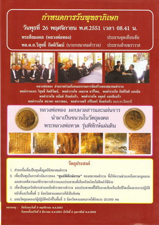 พิธีพุทธาภิเษก ณ อุโบสถวัดสำเภาเชย วันพุธที่ 26 พ.ย. 2551 เวลา 08.41 น.