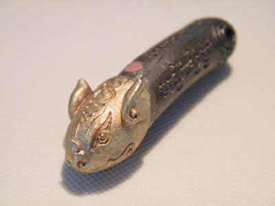สืบเนื่องจากที่ผมและเพื่อนๆ ได้มีโอกาสไปเยือนระยองเมื่อวันเสาร์ที่แล้ว .... ท่านครูน้อย ... ป๋ายุ้ย และ คุณครูหนุ่ย/เกียรตินิรันดร์ ได้กรุณา พาคณะของพวกเราไปกราบนมัสกาล หลวงพ่ออาด พุทธญาโณ เจ้าอาวาสวัดตะพุนทอง ... ท่านพ่ออาด เป็นพระที่มีเมตตามาก ปฏิบัติดีปฏิบัติชอบ ควรแก่การกราบไหว้นมัสกาลได้อย่างสนิทใจ ... ท่านสร้างพระ/เหรียญ และวัตถุมงคลหลายอย่าง ... มีอย่างหนึ่งที่ผมบูชามาเพียง หนึ่งเดียว ครับ คือ "ปลัดหัวปลาไหล" ทำด้วยโลหะ หนักประมาณ 38 กรัม ยาว หัวจรดท้ายประมาณ 5 เซนติเมตร หรือ 2 นิ้วฟุต ครับ .... วันนี้ ขอแนะนำให้เห็นรูปร่างหน้าตาปลัดหัวปลาไหล ครับผม ... ท่านใดชอบทางนี้รีบหาเก็บนะครับ เดี๋ยวจะว่าไม่บอกกันบ้าง