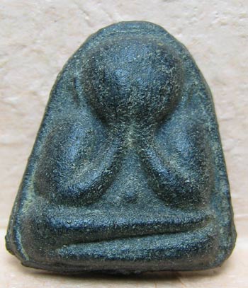 พระปิดตาบินเดี่ยวเนื้อผงโสฬสมหาพรหมหลวงปู่ทิม สร้างโดยคุณประถม อาจสาคร เมื่อปี 2503 ด้านหน้าเป็นพระปิดตาสะดือจุ่น ด้านหลังเป็นรูปพระปิดตาปั๊มจมลงไปในเนื้อพระหรือที่นิยมเรียกกันว่าหลังแบบ มี 2 เนื้อคือ เป็นเนื้อผงสีดำลักษณะคล้ายกับเนื้อผงคลุกรัก และอีกอย่างเป็นแบบเนื้อผงจุ่มรักจากเมืองจีนออกสีแดงใสเข้ม พุทธคุณเป็นเลิศทางด้านเมตตา ปัจจุบันไม่ค่อยได้เห็นอาจเป็นเพราะจำนวนการสร้างแค่ 108 องค์ ติชมกันได้ครับ |