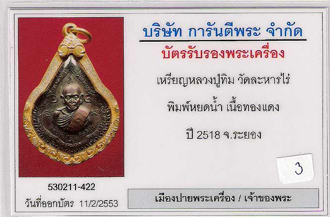 เหรียญหยดน้ำ หลวงปู่ทิม วัดละห่ร่ ระยอง