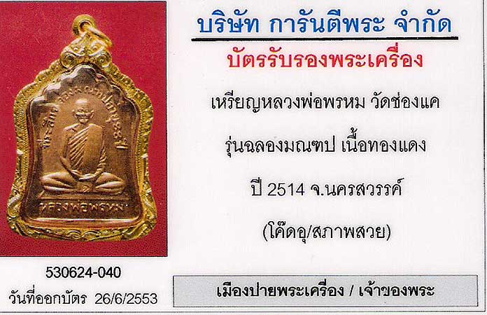 แต่...ถ้าพระองค์ไหน มีบัตรรับรอง (สภาพสวย) จากสำนักงานการันตีพระ ผ่านตาคณะกรรมการ ที่ปรึกษา ส่ององคืจริง พิจารณาแล้ว ว่าสวยจริง การตัดสินใจซื้อก็ง่ายขึ้น