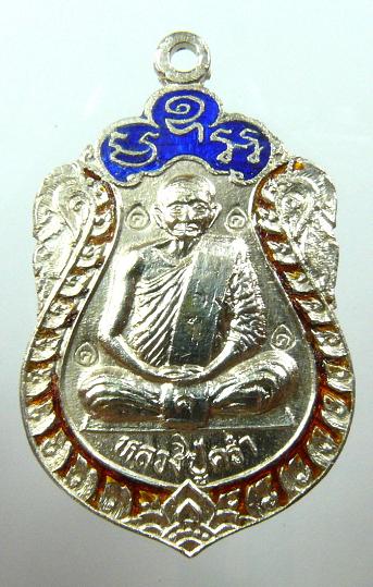 เสมา 8 รอบ หลวงปู่คร่ำ เนื้อเงินลงยาหน้ากากทองคำ 13 โค๊ต ตอกโค๊ตด้านหน้า 7 โค๊ต ด้านหลัง 6 โค๊ต