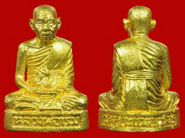 เพราะว่าท่านเป็นพระเกจิอันเป็นที่เคารพยิ่งของชาวศรีราชา ชลบุรีหรือแม้แต่ผู้ที่อยู่ห่างไกล ต่างก็แวะมากราบนมัสการท่านอย่างมิขาดสายด้วยกิตติศัพท์ในด้านต่าง ไม่ว่าจะเป็นความเมตตาหรือแม้แต่ด้านพุทธคุณที่ผู้คนต่างได้ประสบพบเจอกันมาทั้งเมตตา มหานิยม โชคลาภ วัตถุมงคลของท่านนั้นทั้งในอดีต ปัจจุบัน นั้นเป็นไปอย่างเงียบๆไม่หวือหวา เหมือนคลื่นใต้น้ำ สำหรับพระกริ่งรุ่นแรกของท่านนั้นได้รับการคาดการว่าจะเป็นพระกริ่งที่มีอนาคตอีกรุ่นหนึ่งและได้รับการจับตามองอย่างใกล้ชิดแต่ค่อนข้างที่จะหายากแล้วในปัจจุบัน อย่างไรก็ตามก็ยังมีอีกหลายๆรุ่นที่น่าสนใจ และนี่ก็เป็นอีกรุ่นนึงที่น่าสนใจ ๆ ตรงไหน ก็เพราะว่าเป็นรูปเหมือนรุ่นแรกของท่านนั้นเอง โดยมีการจัดสร้างในวาระครบ 7 รอบ ในปี 32 มีด้วยกัน 2 พิมพ์ คือพิมพ์เล็กและพิมพ์ใหญ่ มี เนื้อทองคำ เนื้อเงิน และเนื้อทองแดง สำหรับจำนวนการจัดสร้างนั้นผมไม่มีข้อมูล(ถ้าพี่ๆท่านใดมีโบรชัวส์หรือขอ้มูลรบกวนมาแชร์กันด้วยนะครับ) องค์นี้เป็นเนื้อทองคำที่สร้างตามจำนวนสั่งจองเท่านั้นเท่าที่ทราบมาจากสายตรง มีจำนวนอยู่ไม่ถึงร้อยองค์เท่านั้น ทำให้พบเจอได้ยากกว่าเหรียญนั่งพานทองคำที่สร้างแค่ 199 องค์ซะอีก นะครับท่าน