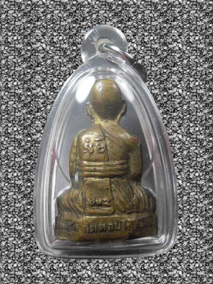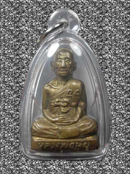 รูปเหมือนปั๊มหลวงพ่อมุ่ย วัดดอนไร่ รุ่น 2 พิมพ์จมูกขีด หลังหนังสือสามแถว เนื้อทองเหลือง ปี2503