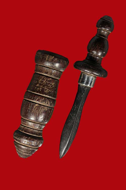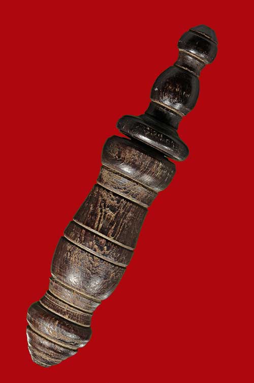พระขรรค์ ไม้พญาดำดง ด้ามทำจากไม้คูณ ที่ใช้ทำปลัดขิก จำนวนสร้างนั้น 20 ด้ามครับ สวย แชมป์ที่สุด และ หายากมาก ( เฉพาะด้ามนี้เท่านั้น ) เพราะว่า ส่วนมากที่เห็นลงหนังสือนั้น จะมีแค่ด้าม ไม่มีปลอกครับ ด้ามนี้มาพร้อมปลอก แถมตอกโค๊ด เลข 3 ตามมาตราฐานหัวและท้ายด้าม ทุกอย่าง สมบูรณ์ที่สุด ขนาดวันนี้ลูกศิษย์ก้นกุฎิเห็นยังบอกเลยว่า ด้ามนี้สมบูรณ์และสวยมาก หายากมากจริง ๆ ด้ามพระขรรค์ทำจากไม้ที่ใช้ทำปลัดขิก คือ ไม้คูณตายพราย ปลัดขิกไม้แบบไหนด้ามพระขรรค์ต้องเป็นไม้แบบนั้นครับ แถม ใบพระขรรค์นั้นเป็นไม้พญาดำดงครับไม้นั้น มีลายมือหลวงปู่ทิม อิสริโก จารด้วย พร้อมอยู่มุมหนึ่ง หายากที่สุด มีเงินเป็นล้าน ก็หาไม่ได้ครับ |