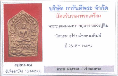 ( ขออนุญาติ นำมาลงโชว์อีกครั้งนะครับ ดีนะที่ยังเก็บรูปบัตรรับรองไว้ )