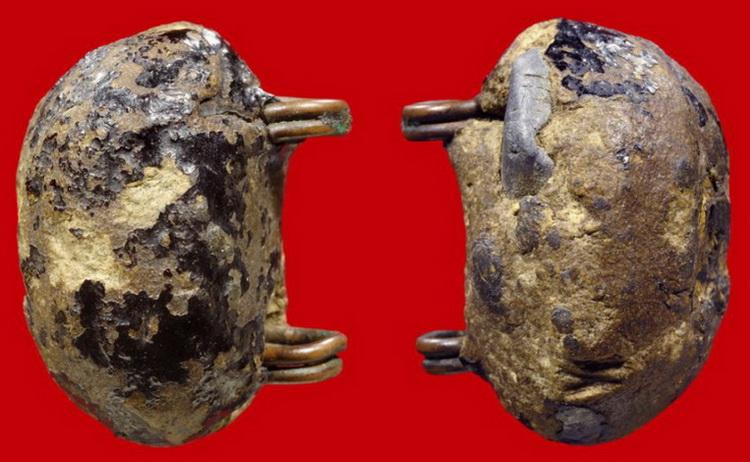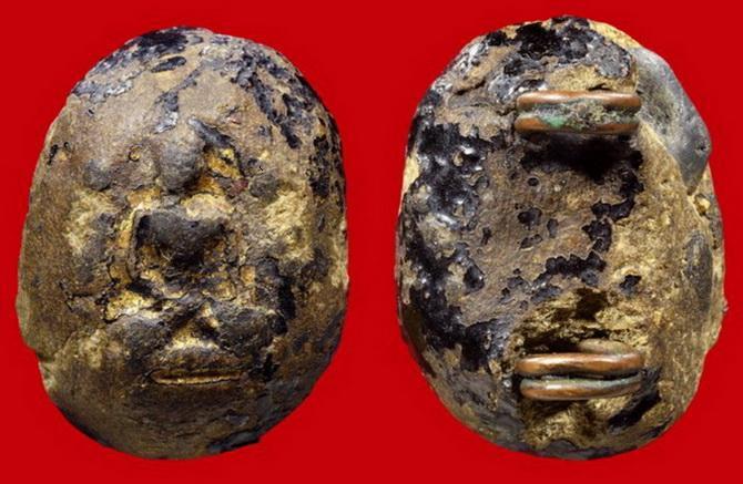 เอาของแปลกมาโชว์ครับ ท่านผู้ทำเบี้ยคงอยากได้เนื้อผงวิเศษไว้ใช้ด้วย ก็เลยเอาเนื้อผงผสมว่านที่ใช้สร้างพระมาพอกแล้วเอาพิมพ์เศียรโล้นสดุ้งกลับมากดไว้ ดูเนื้อหากับรักเก่าแล้วต้องเอาไว้ใช้ครับ (เพราะเช่ามาราคาเต็มสูบ...แบบว่าอยากได้ อ่ะครับ)