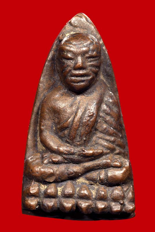 สภาพพระเดิมๆแบบเก่าเก็บ หล่อได้ล่ำคมชัดลึกทุกสัดส่วน (สภาพหล่อได้ล่ำและคมชัดอย่างนี้พบเจอได้น้อย) ผิวออกสีแดงมันเทศ ไม่มีร่องรอยการแต่งเก่า รอยตะไบและรอยตัดช่อครบสูตร |
