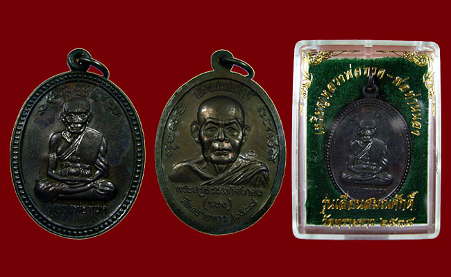 2.เหรียญเลื่อนสมณศักดิ์ อ.นอง วัดทรายขาว ปี2538 พิมพืไข่ปลาล่าง ผิวพอสวยดำหน่อยๆ..แต่..จมูกไม่โดนมาเลย ได้กล่องเดิมๆมาด้วยครับ  |